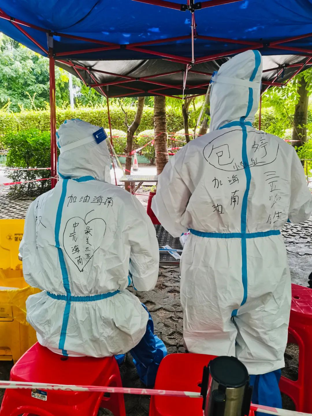 8月4日起,中元海南三亚办公区员工即因城市静态管控转入居家办公状态,中元海南3名员工就地转为社区志愿者参加社区抗疫工作。每天清晨和上午,他们身披“白甲”报到集合,顶着三亚的烈日,维持秩序、测量体温、采集信息;下午和晚上,他们居家办公,完成手头生产任务。截至8月17日,3名员工共计参与志愿者服务26天,作为央企员工代表为海南抗疫奉献绵薄之力。